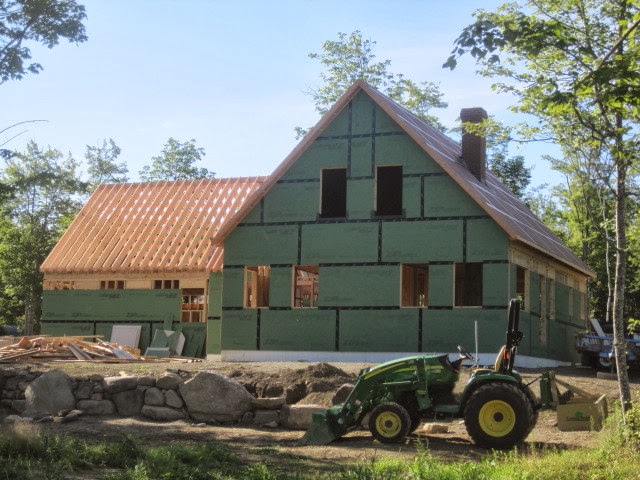 No matter what house style, no matter what budget, energy-efficient building techniques should be utilized to enhance ongoing home energy performance. The following photograph of a current project in New Gloucester, Maine, highlights a few details that will have a dramatic positive effect regarding how comfortable this house will be, as well as less expensive to heat.